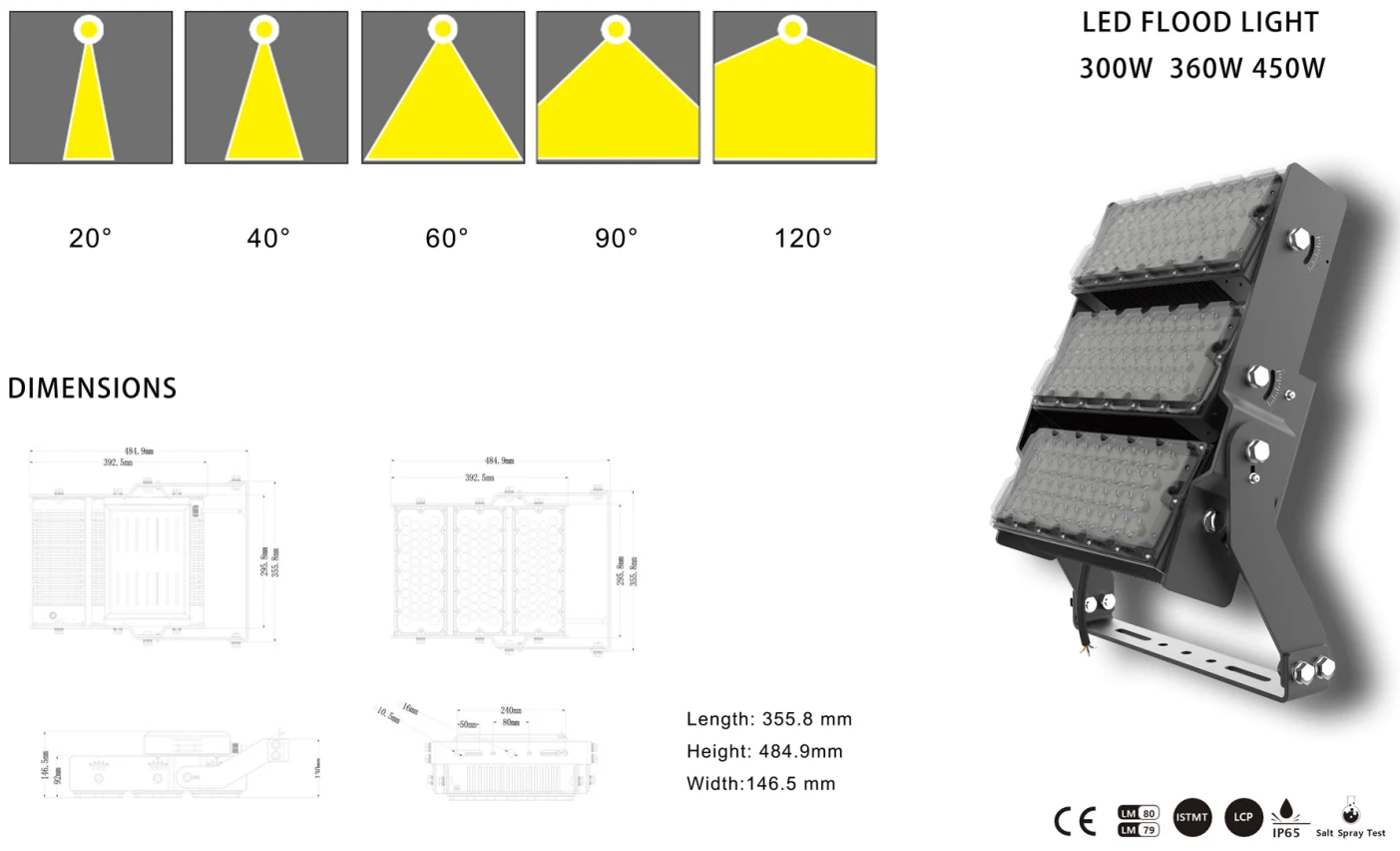 · 400 वाट और 500W मेटल हैलाइड जुड़नार के बराबर रोशनी के साथ आप "इंस्टेंट-ऑन, फ़्लिकर-फ्री" कोल्ड स्टार्ट, और इंडस्ट्री-लीडिंग 155-160LM/W का आनंद लेंगे।