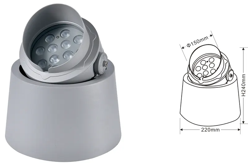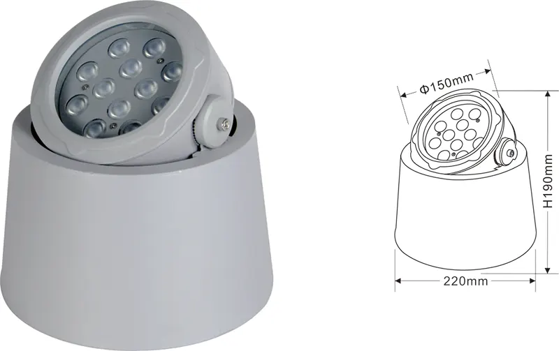 | एलईडी ट्री अपाइट | Kons-tgd10-1 | Φ150*φ220*H190 मिमी | 12W | सामग्री: एल्यूमीनियम+टेम्पर्ड ग्लास ब्रैकेट प्रकार: समायोज्य IP: IP67 रंग तापमान वैकल्पिक: 3000k/4000k/6500k RGB / DMX512 RGBW / DMX512 पारंपरिक ग्रे, निर्माण के मुखौटे के रंग से मिलान करने के लिए अनुकूलन |